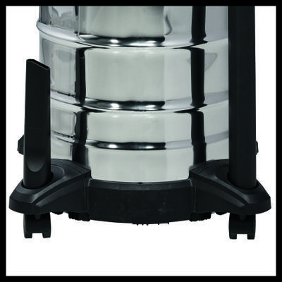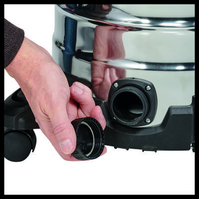| Manufacturers' Specifications | The Einhell TC-VC 1930 S wet & dry vac is a powerful helper with a 1,500 W rating for in-depth and thorough cleaning jobs. The wet & dry vac is equipped with a rust-proof and sturdy stainless steel tank with a capacity of 30 litres. An integrated water drain screw makes easy work of emptying the tank. The blow connection is for blow-cleaning hard-to-reach areas. Four castors ensure good mobility during use. For tidiness on the equipment, there is a practical accessories holder and a cable holder on the housing. The product is supplied complete with a 2.50 m plastic suction hose (Ø 36mm) with high air/dirt flow and a 2-piece extension tube, floor and crevice nozzle and foam and pleated filter. |