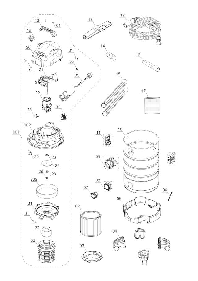 - Hose System: The Ø 36mm system maintains high air and dirt flow.