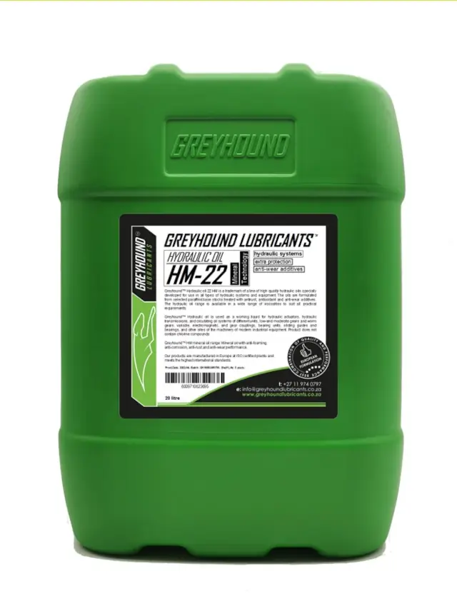 Greyhound™ Hydraulic HM-22 is a high-quality mineral-based hydraulic oil, formulated for industrial and mobile hydraulic systems requiring superior fluid stability, wear protection, and corrosion resistance. Using highly refined paraffinic base oils, it delivers excellent oxidation resistance, anti-foam properties, and sludge prevention, ensuring reliable operation and prolonged equipment life.