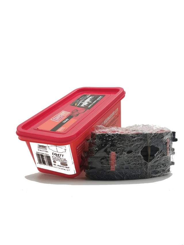 Safeline Brake Pads D947 with no wear indicator, suitable for many South African Taxi vehicles. Safeline is your No. 1 choice for safety. Our brake pads are manufactured to OEM quality, and our range of aftermarket brake pads fit up to 90% of vehicles on South Africa’s roads. Safeline is the only brake pad manufacturer in South Africa to be both E-Mark and SABS Certified.
