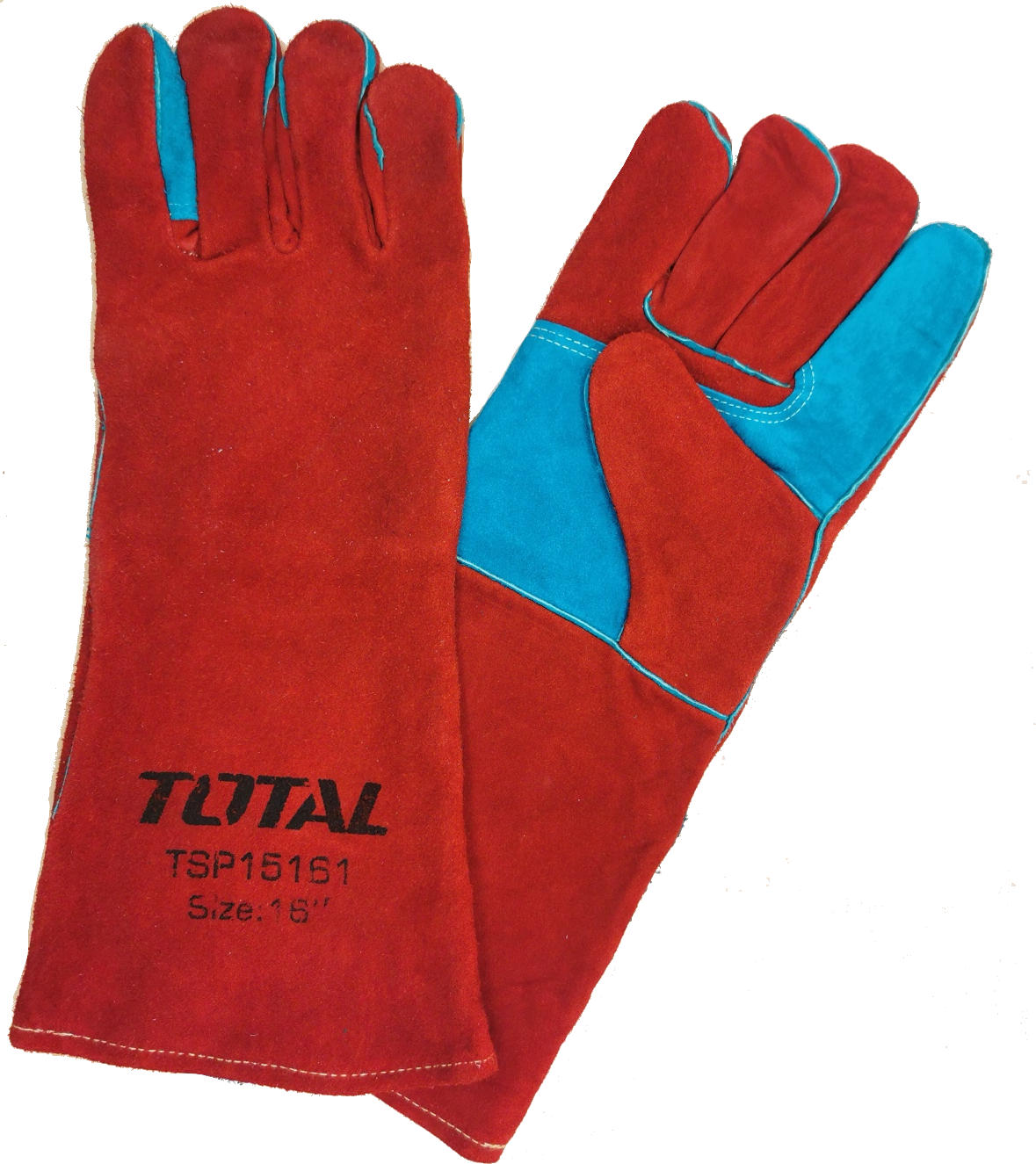 TOTAL Tools Welding Leather Gloves have split cowhide leather gloves, reinforced double palms, and one piece back, fully lined and sewn with Kevlar thread.
